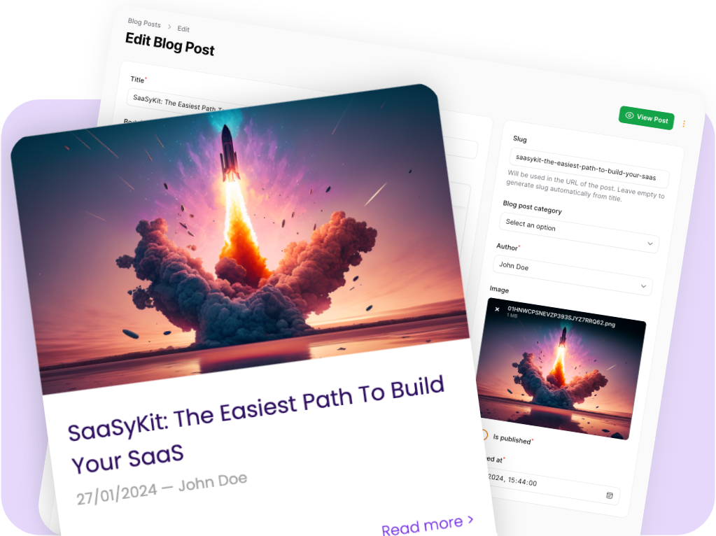 SaaSykit est livré avec un système de blog prêt à l'emploi que vous pouvez utiliser pour publier des articles et tutoriels pour vos clients sur votre SaaS, ce qui vous aidera avec votre SEO.