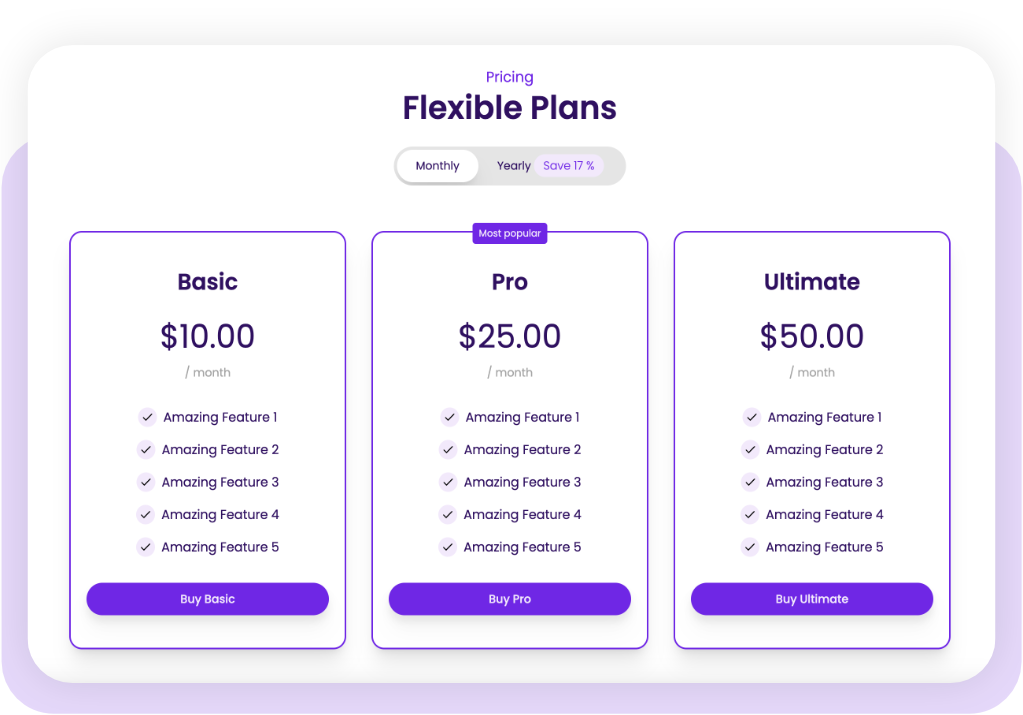 Créez et gérez vos produits, plans et tarification, définissez les fonctionnalités pour chaque plan, marquez un plan comme mis en avant, et plus encore.